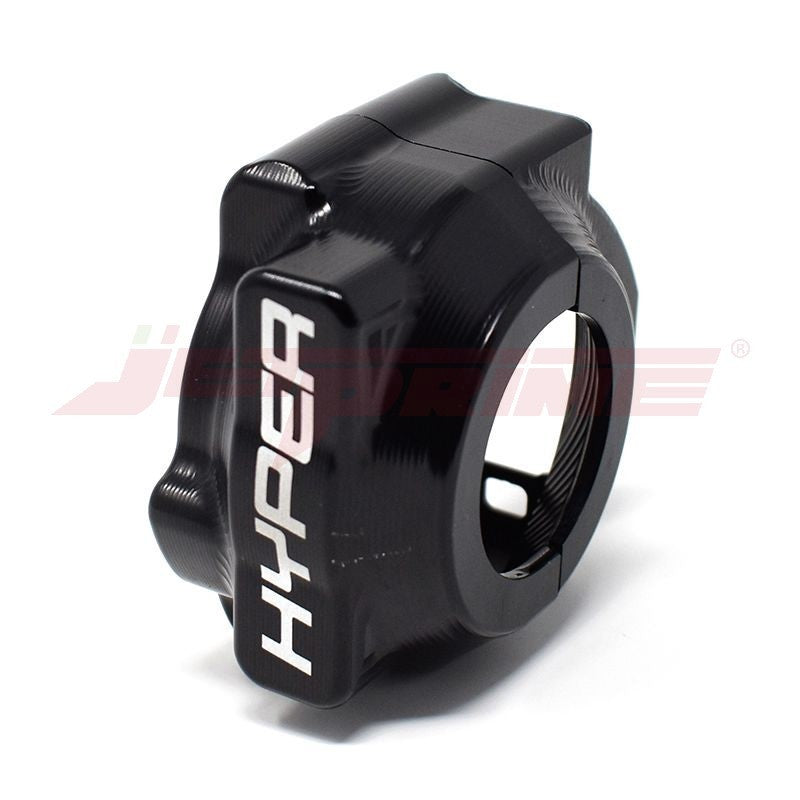 Jetprime - Precision Control, Supreme Quality Jetprime Throttle Cover for Ducati Hypermotard 950 designed for use with OEM throttle control - electronic throttle not included In the event of a fall, this new aluminium quick throttle unit is a much more robust option compared to the OEM fitted plastic unit. CNC machined from 7075 aluminium, it will help to protect your valuable electronic throttle. Part No. JPACS050H Model compatibility Ducati Hypermotard 950 2019 - current