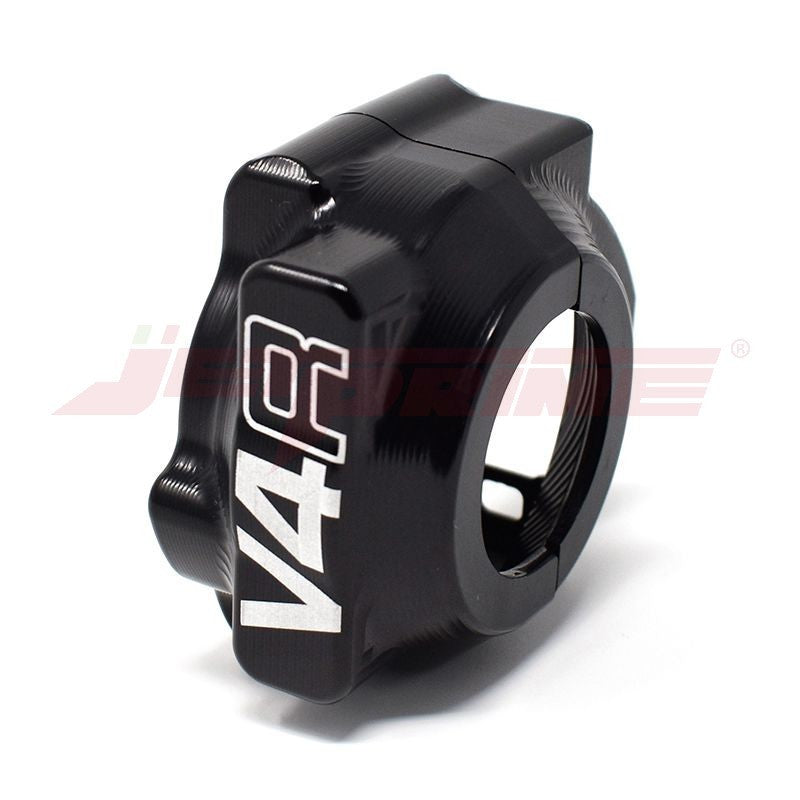 Jetprime - Precision Control, Supreme Quality Jetprime Throttle Cover for Ducati Panigale V4R designed for use with OEM throttle control - electronic throttle not included In the event of a fall, this new aluminium quick throttle unit is a much more robust option compared to the OEM fitted plastic unit. CNC machined from 7075 aluminium, it will help to protect your valuable electronic throttle. Part No. JPACS050V4R Model compatibility Ducati Panigale V4R 2019